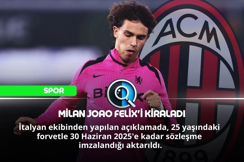İtalya Birinci Futbol Ligi (Serie A) takımlarından Milan, İngiltere Premier Lig ekibi Chelsea'den Joao Felix'i kiralık olarak sezon sonuna kadar kadrosuna kattı.